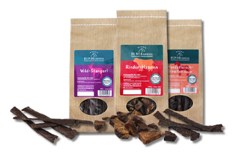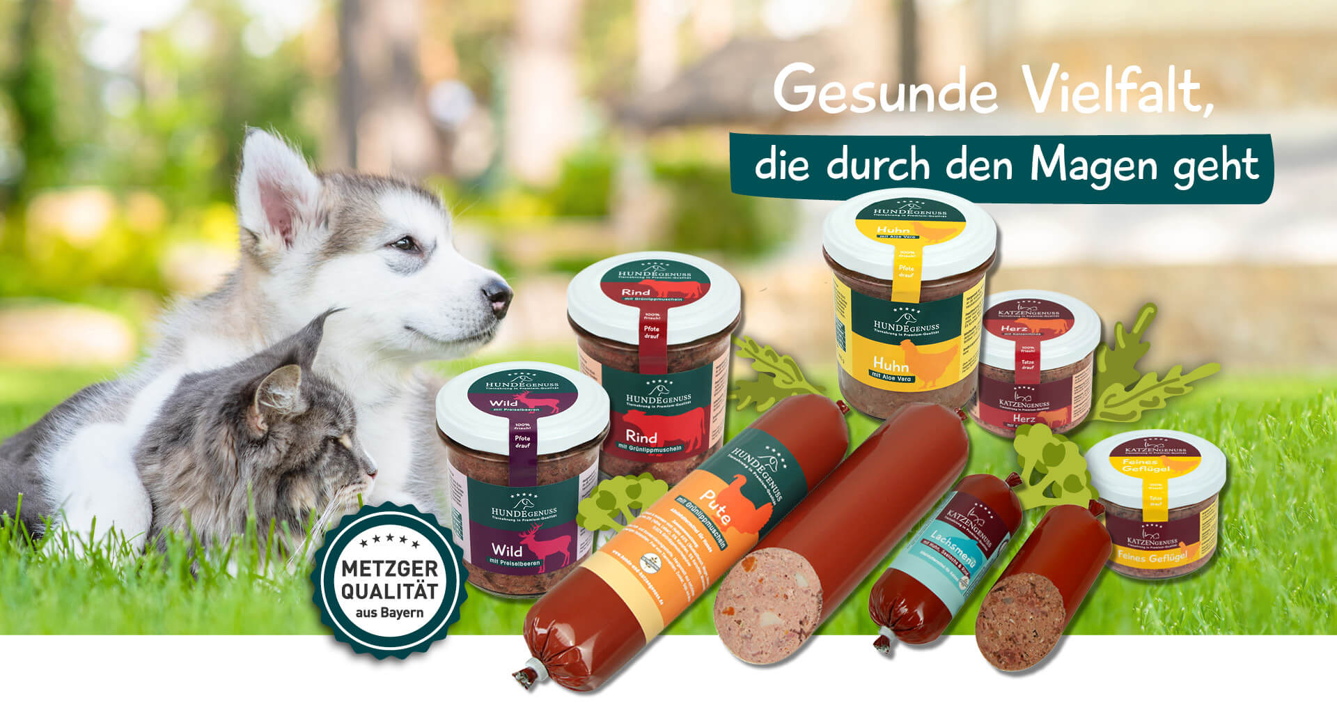 Im Gegensatz zu anderen Verpackungsmaterialien produzieren unsere Tiermenüs im Glas oder als Wurst nur sehr wenig Müll, da die Umhüllung voll recyclebar ist. Sie können einfach und platzsparend gelagert werden und sind ungeöffnet ohne Kühlung mindestens 24 Monate haltbar. Außerdem steht sowohl das Glas als auch die Wurst in keinerlei Wechselwirkung mit seinem Inhalt – es gelangen also keine Schadstoffe in die Nahrung Ihres vierbeinigen Freundes und höchster Genuss ist garantiert.